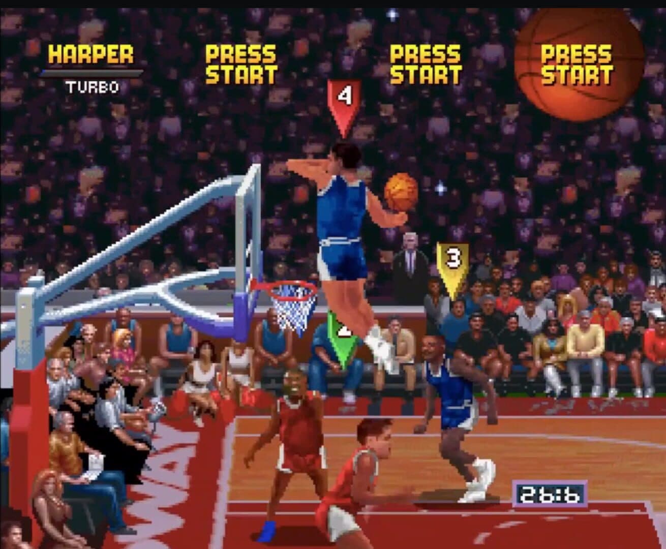 NBA Jam Tournament Edition brings you more senses-shattering slam dunking excitement than ever! More than twice as many NBA superstars, more than double the secret characters, Hot Spots, Super Jam Power-Ups, battery back-up and - OH MY - nine all-new rim-rattling slam dunks plus all the original jams! NBA JAM Tournament Edition... it's on FIRE!
