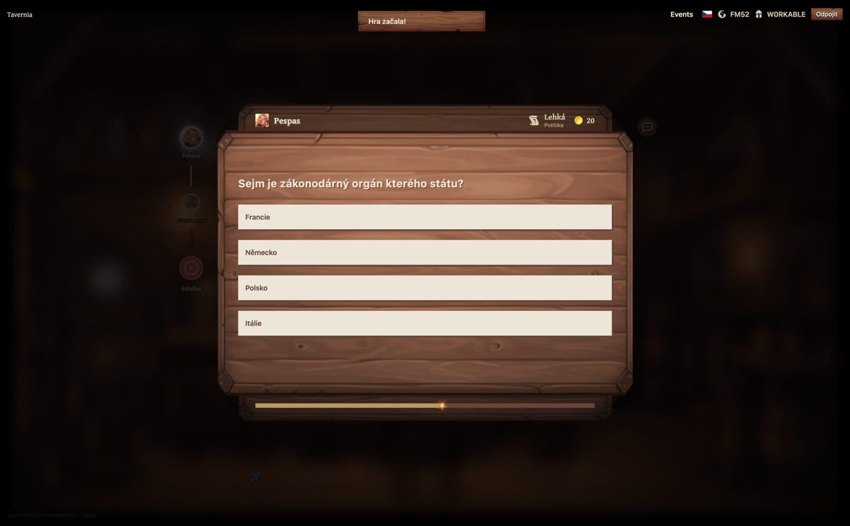 Tavernia is a multiplayer strategy trivia game set in a medieval tavern. Players fight for territory by answering questions and playing minigames.